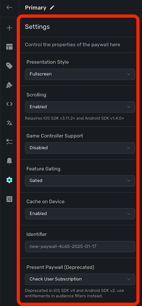Toggle game controller support for paywalls — obviously, ideal for paywalls shown in games where controllers may be in use. Available options are: