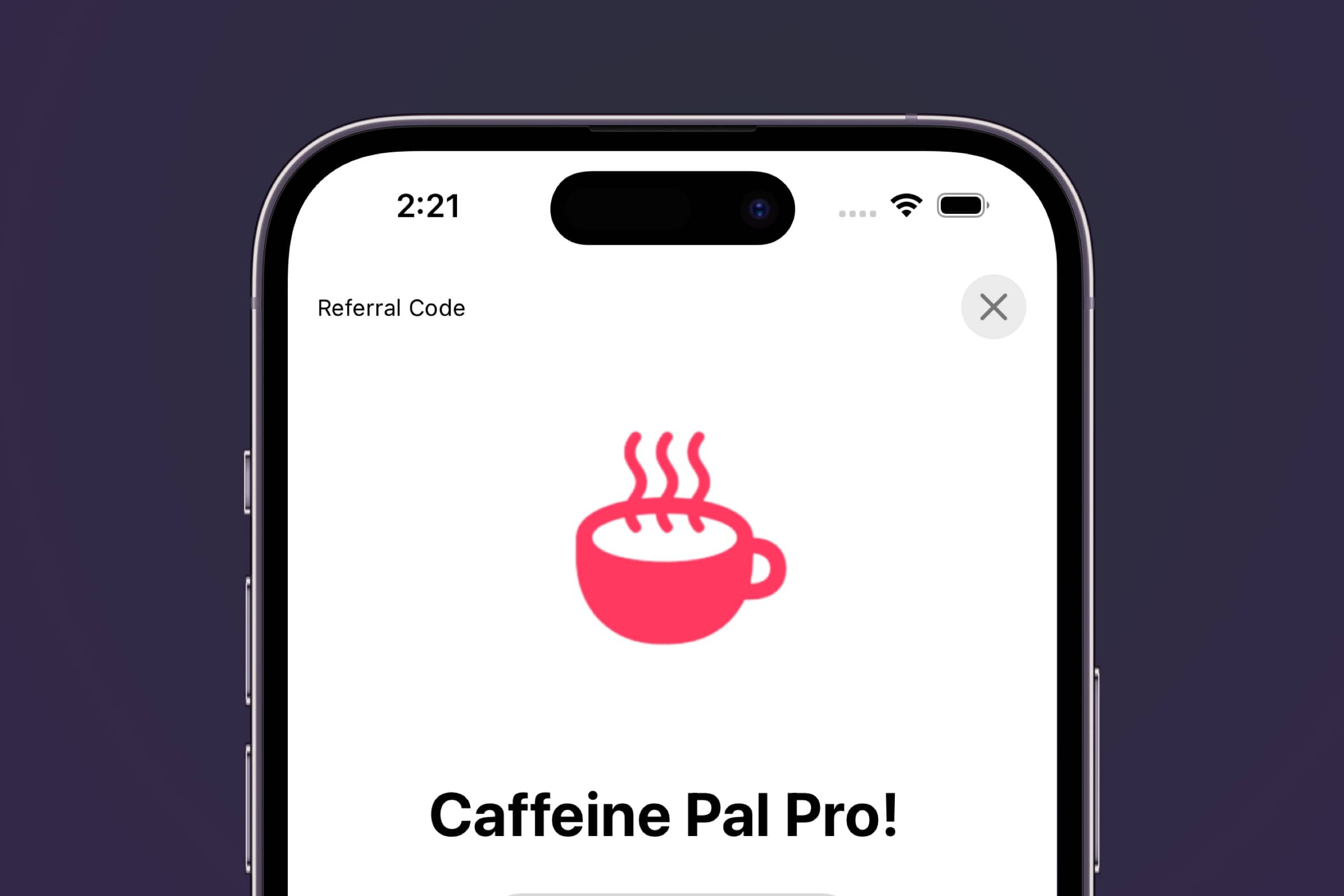 Using the SuperwallDelegate, the app responds to the custom action. It presents a customized referral redemption interface on top of the existing paywall. This is optional, but presenting over the paywall means that the user will be taken back to it if the redemption code entry fails: